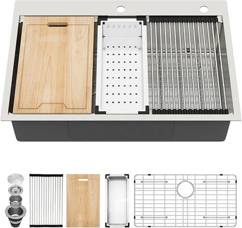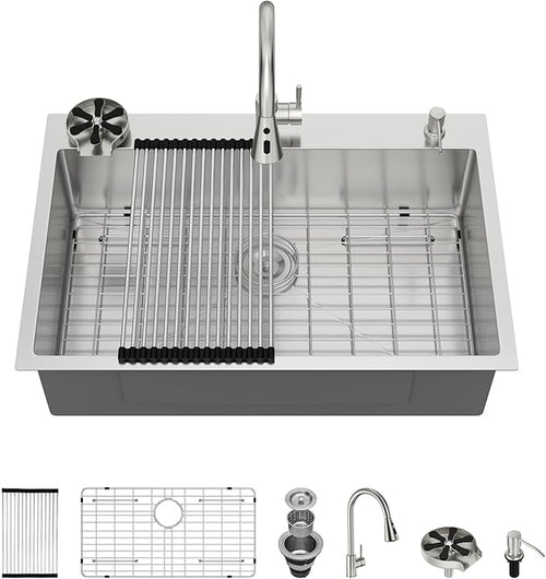 33x22 Drop In Kitchen Sink with Faucet Combo16 Gauge Stainless Steel Single Bowl Kitchen Sink